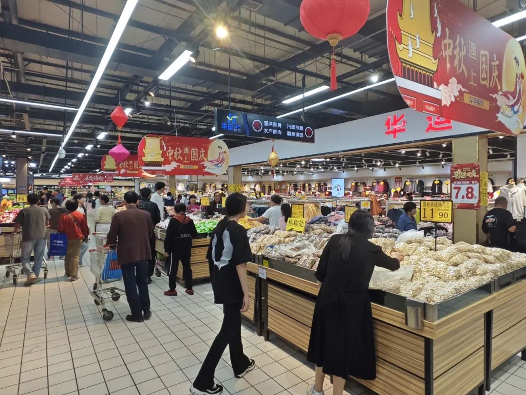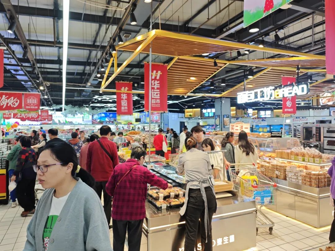 “节假日,酒水、礼盒、零食、生鲜这些都成了消费的大头。客流也是噌噌往上涨。”华运超市总经理丁高柱介绍,节日期间,消费升级明显,客单价有至少10%以上的提升。收银、现场理货等岗位全部安排了人员加班,确保节日消费高峰期能满足消费者需求。除了购物消费