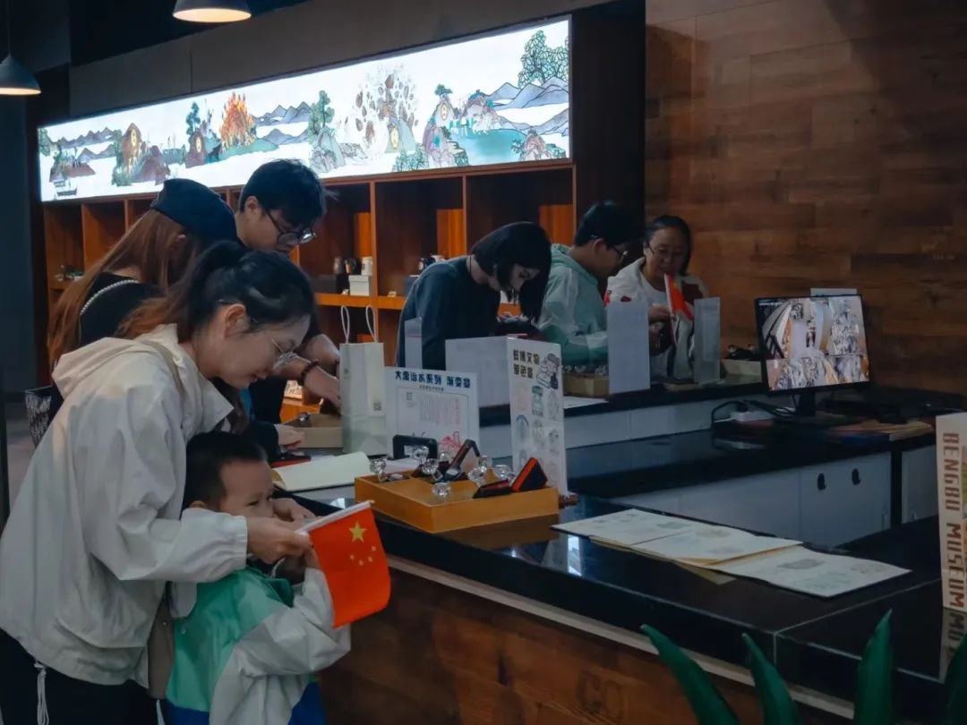 大禹治水套色章、双墩笑脸看蚌埠单色章、蚌埠城市系列章……在蚌埠市博物馆文创体验中心的打卡集章处,这里排起了长队,60多款印章吸引了众多集章爱好者。