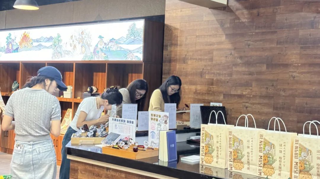 走进蚌埠市博物馆文创体验中心,以“小陶人”为原型制作的毛绒挂件憨态可爱,蚌埠镇馆之宝吊坠冰箱贴、双墩笑脸手机包、笔记本、博物馆书签等。“以蚌埠市博物馆馆藏文物和地方特色作为提取元素和亮点的文创产品。每一件制作都很精美,让人爱不释手。”来自合肥的游客王女士表示,她特别喜欢可爱的毛绒文创玩具,像笑墩墩这么可爱的挂件,还有各式各样的精美冰箱贴,让更多像她一样的年轻人开始并愿意走进博物馆,深入了解文物,从而喜欢博物馆文物。