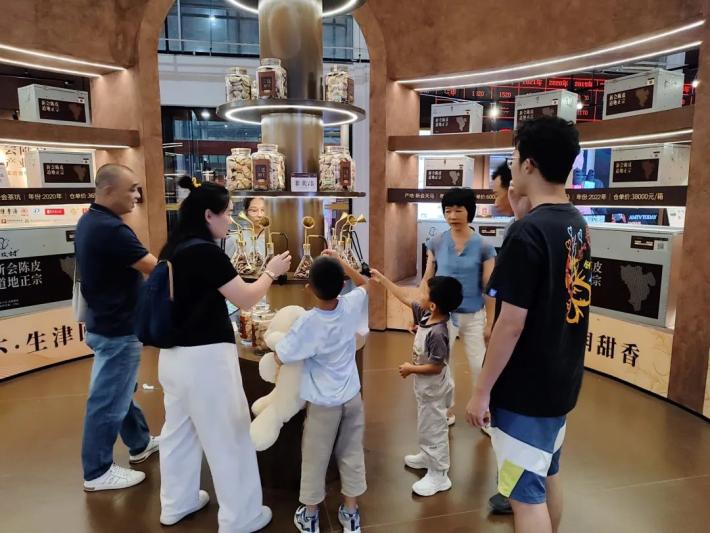 假期期间,新会陈皮村还开展陈皮美食潮玩市集活动,陈皮咖啡、陈皮雪糕等陈皮美食应有尽有,现场还设置了新会陈皮数字化溯源体验区,游客能够直观了解一块新会陈皮“诞生”的全过程,对新会陈皮及其文化有了更加深入的了解。