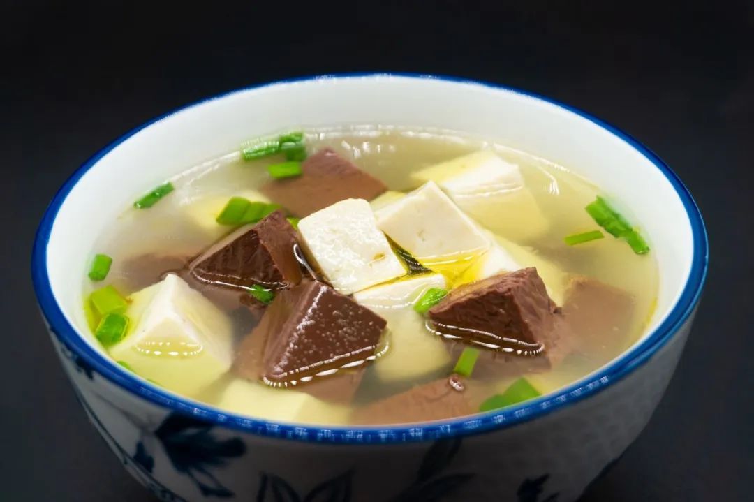 鸭血的脂肪含量更是几乎为 0,维生素 A 含量高,铁含量非常丰富,50 g 就能满足成年女性一天的铁推荐量,有利于预防贫血。