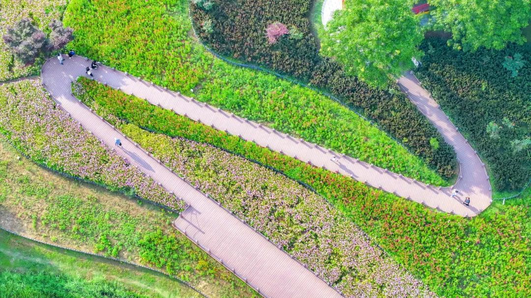 在四季花海公园,星罗棋布的花草错落有致、高低起伏,五彩斑斓的花、绿色的叶,宛如一幅诗情画卷,美得让人挪不开眼。轻风拂过,娇嫩的花朵随风起舞,在阳光下熠熠生辉。沿路骑行而过,任凭微风拂面,将烦恼抛在脑后,两旁的美景映入眼帘,此刻宛如放飞的小鸟,既轻松,又快活。