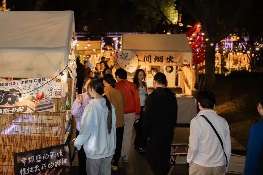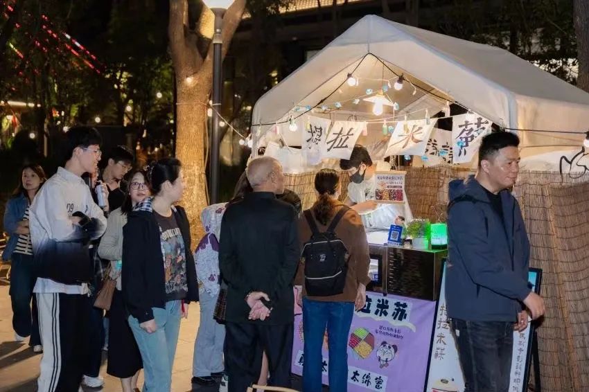 除了文创、音乐,夜市里少不了的烧烤、啤酒、饮品等特色小吃摊也“打扮”得格外文艺。