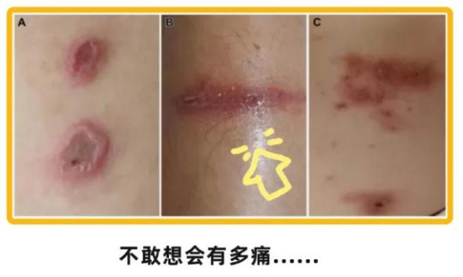 一旦皮肤接触到这种毒液,就会出现条状、片状或点簇状水肿性红斑,表面出现脓疱、糜烂、结痂情况,若发生于眼睑或外阴则明显肿胀,有瘙痒、灼痛和灼热感,严重者可伴发热、头晕、局部淋巴结肿大,以上症状统称为“隐翅虫皮炎”。这种皮炎痊愈后,色素沉着也会持续很久……