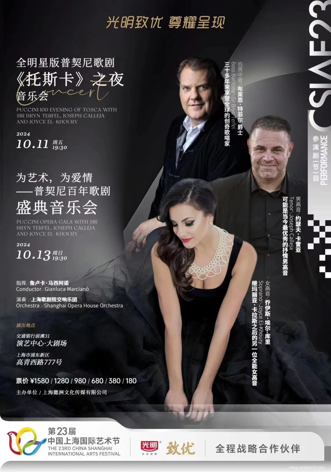 为纪念普契尼逝世100周年,全明星阵容的音乐会版歌剧《托斯卡》力邀女高音歌唱家乔伊斯·埃尔库利、男高音歌唱家约瑟夫·卡列哈和低男中音布林·特费尔爵士组成国际化全明星阵容联袂出演众多经典唱段。