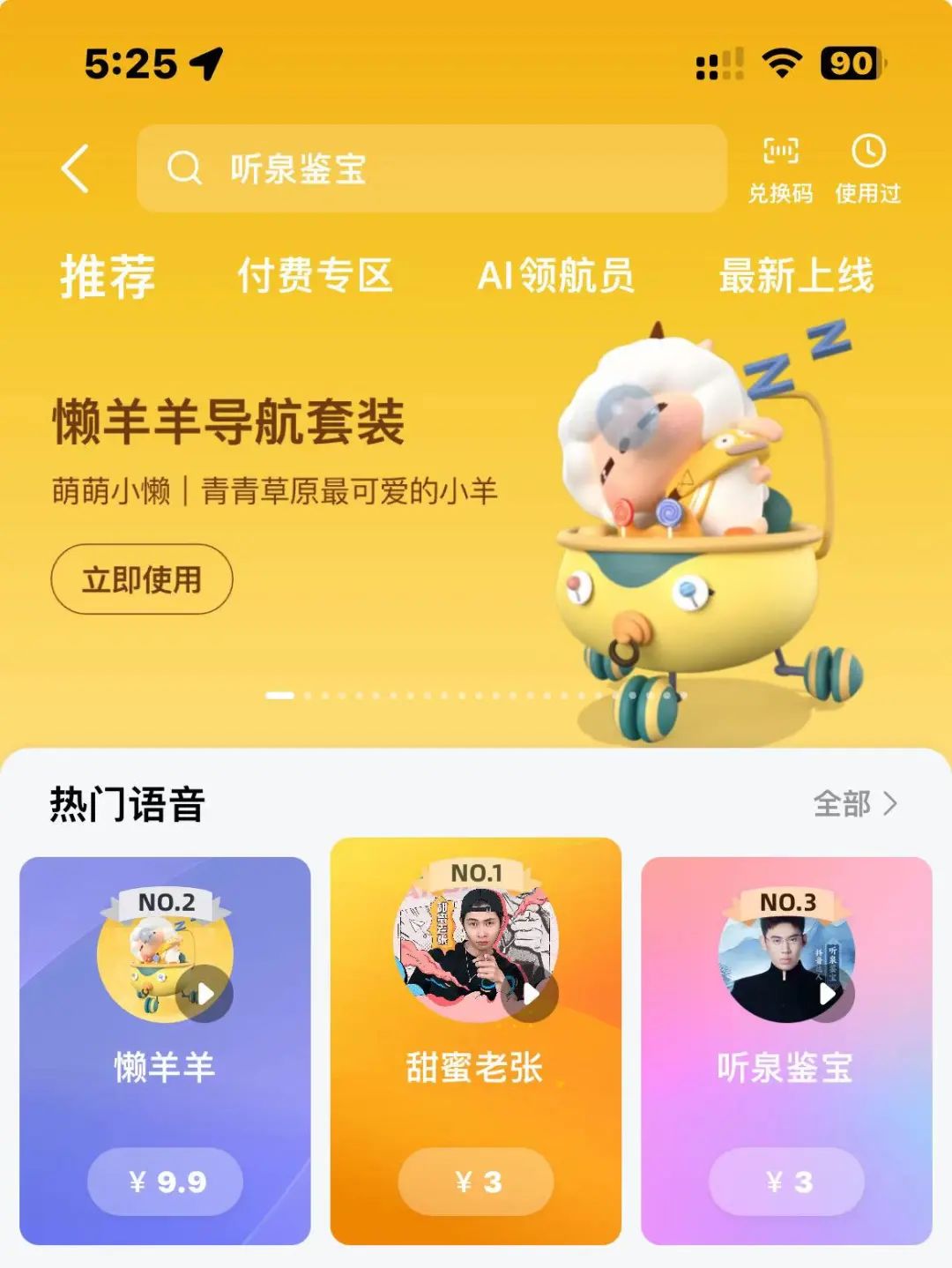 蓝鲸记者查询发现,近日高德地图上线了听泉鉴宝付费语音包,短时间内该语音包就已位列高德热门语音第三位。除此之外,听泉鉴宝还成为了游戏“无畏契约”的夜市福利官。