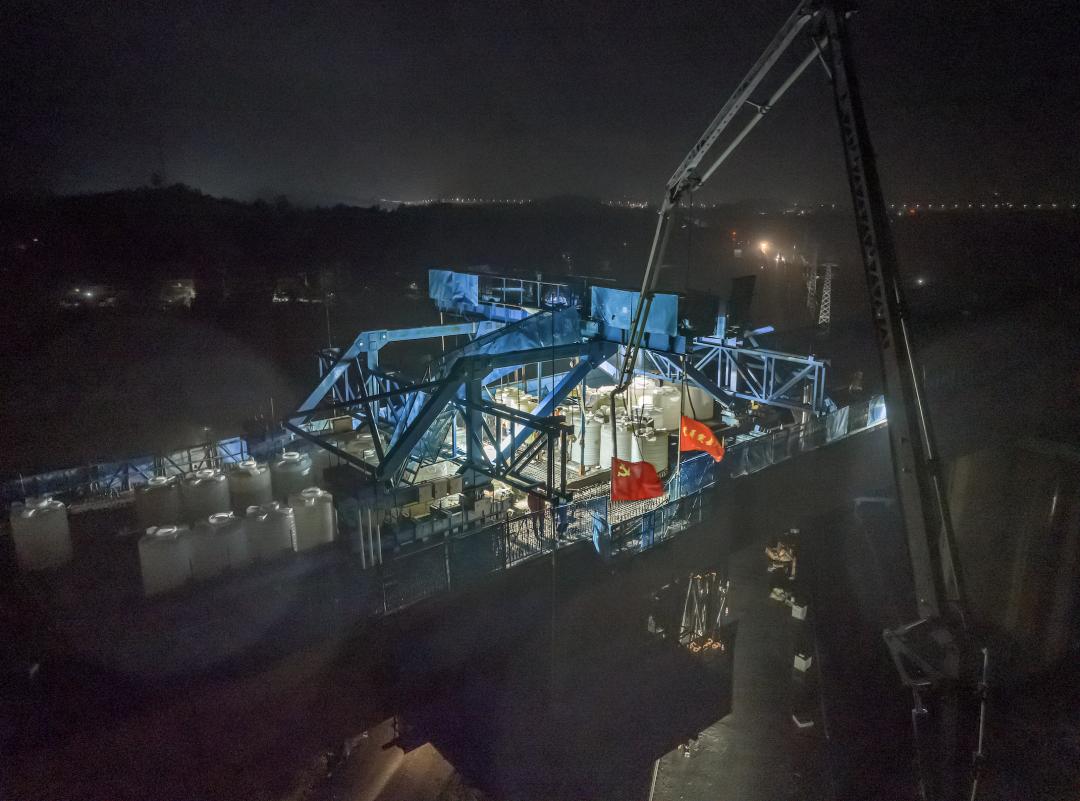 高明特大桥跨杨梅河连续梁浇筑现场。图源肇庆头条