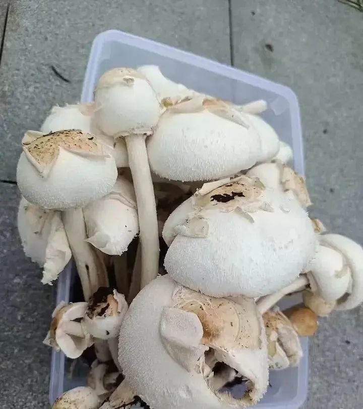 陈师傅原来在老家时,也见过这些白蘑菇,烧来吃过,味道很好。于是他在河边草丛里采了整整一筐的蘑菇。“我回去炒了一盘,真的非常鲜啊!于是就想着带给同事们尝尝。”