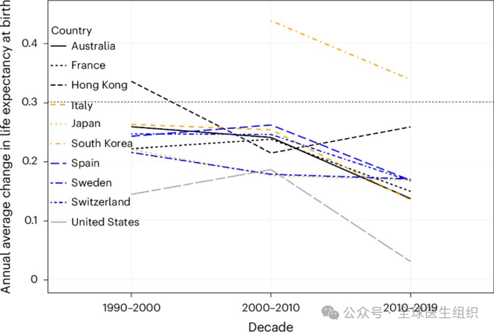 该证据是基于目前预期寿命最长的国家和地区的死亡人口数据,包括香港、日本、韩国、澳大利亚、法国、意大利、瑞士、瑞典、美国和西班牙。