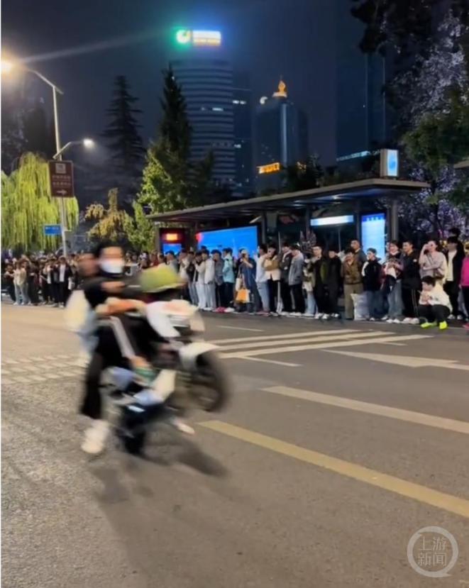 摩托车手深夜“炸街”飙车