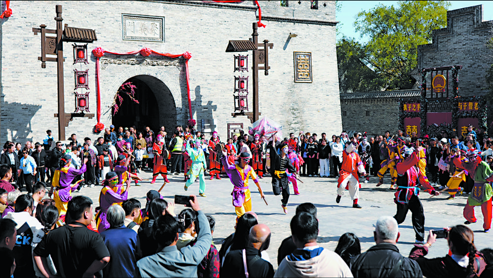 在郓城水浒好汉城景区,好汉迎宾、燕青打擂、李逵坐衙等节目每天轮番上演,二鬼摔跤、技巧蹬技等表演趣味横生,英歌舞、时迁盗宝等活动精彩纷呈。夜幕降临,精彩的夜场大秀开启,环球飞车风驰电掣,打铁花绚丽多彩,篝火晚会如梦如幻,到处充满了活力与激情。