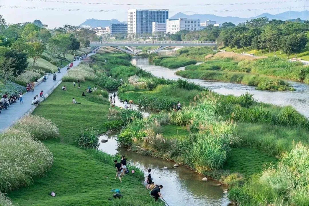 龙岗河沿河碧道徒步和骑行的市民。@点小评 游侠/摄