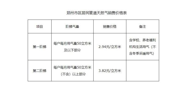 原标题:《郑州市区居民管道天然气销售价格调整》