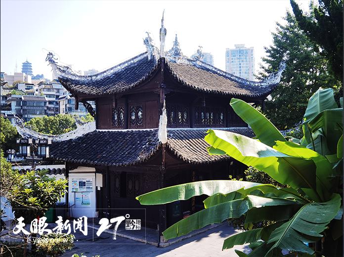王阳明主教贵阳书院后,多次游览南庵,即如今的贵阳翠微园。阳明先生诗中的甲秀楼一带,前临清潭,后负松岗,草木竹石杂置错陈,环境清幽,回廊楼亭,古朴典雅。国庆假期期间,翠微园迎来了络绎不绝的游客,为这片青砖黛瓦的古建筑增添了更多人气。游客们或是驻足欣赏甲秀楼的精美,或是在回廊下拍照留念,试图将这份美好定格在瞬间。