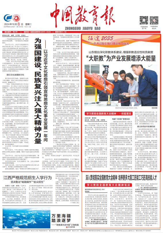 10月8日,《中国教育报》头版刊发了题为《山东烟台深化职教体系建设,增强职教适应性和贡献度 “大职教”为产业发展增添大能量》的文章,对我省烟台市职教体系建设工作经验进行了报道。