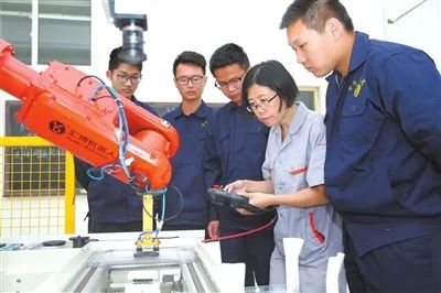 ☆烟台职业学院学生进行机器人实训
