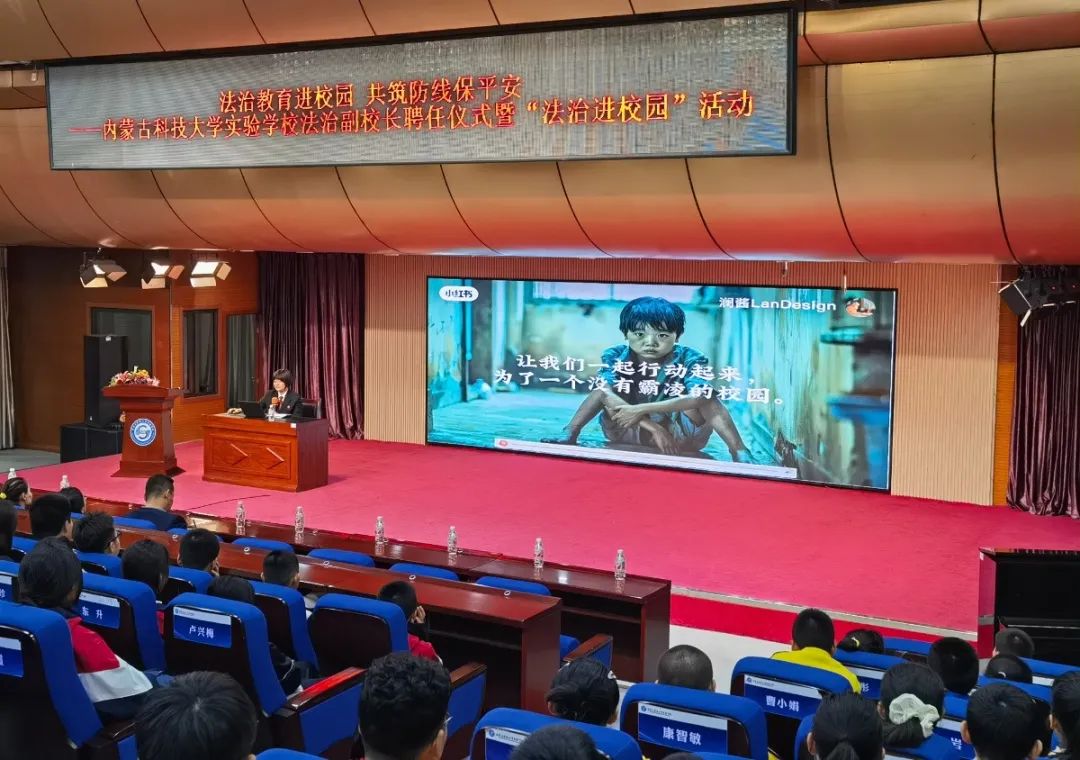 近日,内蒙古科技大学实验学校举行法治副校长聘任仪式,包头市中级人民法院常静、华婷、李莹三位干警正式被聘任为法治副校长。并以铸牢中华民族共同体意识为抓手为该校师生带去了一堂生动有趣的法治教育课,将红色教育、法治教育有效嵌入学校课堂,将爱国、爱党、爱社会主义的情感根植于同学们心中,以司法力量护航未成年人健康成长。