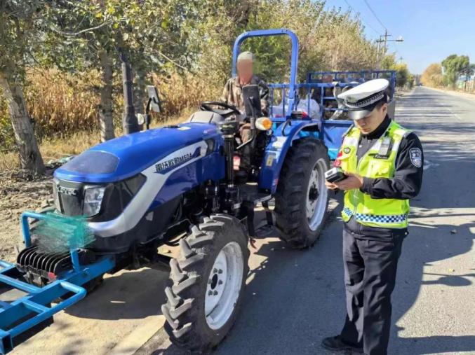 为进一步预防和减少拖拉机、农机设备道路交通事故,确保农机安全生产,从源头上消除和减少各类农机道路交通事故隐患,近期,辽源市公安局交警支队公路大队联合农业农村局走进辖区黑牛村开展“护航秋收路”交通安全检查宣传活动。民警采取流动巡查与定点检查相结合的工作方式,重点加大对各类农机违法载人、涉牌涉证、非法改装、未经检验或检验不合格的拖拉机上路等违法行为的查处力度,对相关违法行为依法进行查处,全力消除道路交通安全隐患。他们还对农机驾驶人进行了安全驾驶宣传教育,讲解交通法律法规和农机安全知识,耐心指导驾驶人文明驾驶、安全行车,并且为拖拉机、低速载货车、电动三轮车等农用车辆粘贴车尾反光标识,增加农用车夜间辨识度,预防追尾交通事故发生。