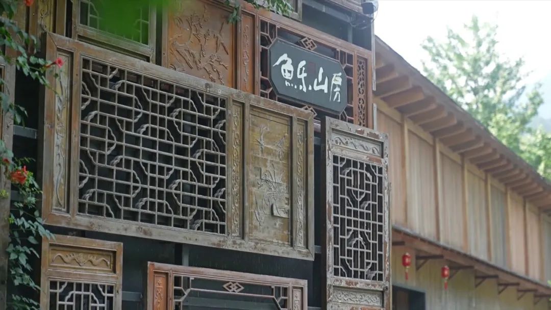 鱼乐山房,位于太湖源镇白沙村,坐落在苍翠山脚和竹林之间,是一座中式复古建筑,传统中式镂空雕花门窗,将整个民宿包裹起来,远处流淌的淙淙山泉和山谷传来的清脆鸟鸣,活脱脱一幅生动的“山水国画”,夏菊萍就是这家山房的主人。