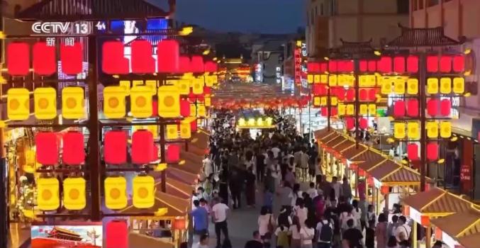 总台记者莫雅瑄:享用了一天文化盛宴后,还要饱尝一顿美食盛宴。到了饭点,不少游客会选择来到敦煌夜市,一站式品尝多种地道小吃。