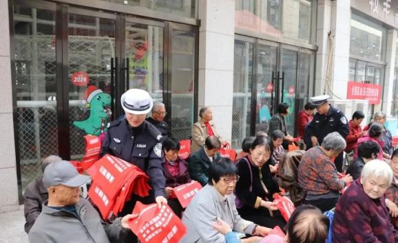 宣传民辅警通过发放交通安全宣传读本、宣传海报、宣传手提袋、互动问答、劝导等方式,向老人详细讲解:骑乘电动车、摩托车不戴安全头盔、三轮车违法载人、逆行、过路口、转弯时闯红灯等交通违法行为的危害,教育和劝导老人不乘坐三轮车、骑乘电动车、摩托车佩戴安全头盔、过路口、转弯时,“一停、二看、三通过”拒绝各类交通违法行为,自觉养成文明交通、安全出行的良好习惯。