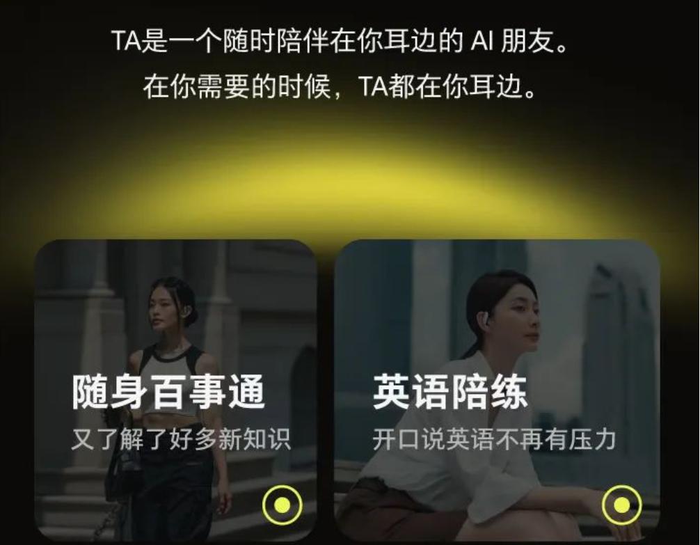 图源:豆包官方公众号据介绍,该款耳机植入了豆包大模型,并与字节对话类AI应用豆包App结合:戴上智能耳机后,用户可通过语音对话随时使用豆包,在豆包App上也可以操控这款耳机。豆包官方介绍资料也显示,耳机内置了随身百事通、英语陪练等服务内容。