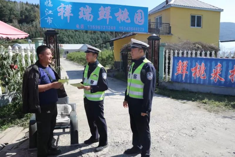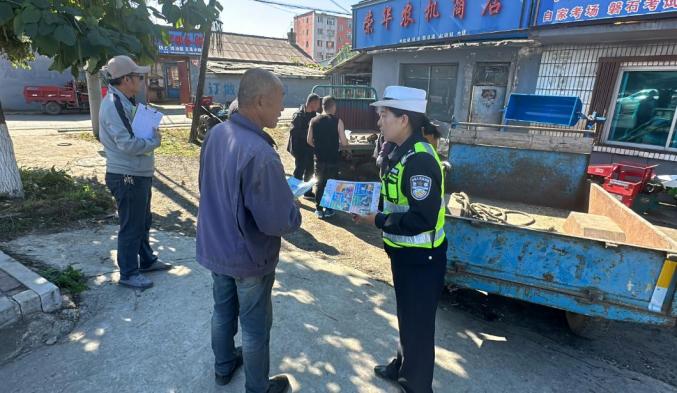 10月8日,临江市公安局交警大队组织民警走进花山镇开展“美丽乡村行”交通安全宣传活动,全力筑牢辖区农村交通安全屏障。根据“秋收农忙”期间农村地区群众出行特点和规律,针对农村群众交通安全意识淡薄的特点,民辅警通过“拉家常”“唠唠嗑”“话安全”等方式,先后向农村群众普及交通法律法规、恶劣天气出行提示、突发交通事故应急处理方法等交通安全知识,要求大家时刻牢记“安全带就是生命带”,杜绝“图省事”“图方便”侥幸心理,秋收农忙不忘安全,确保农村群众“听得懂,记得住”。