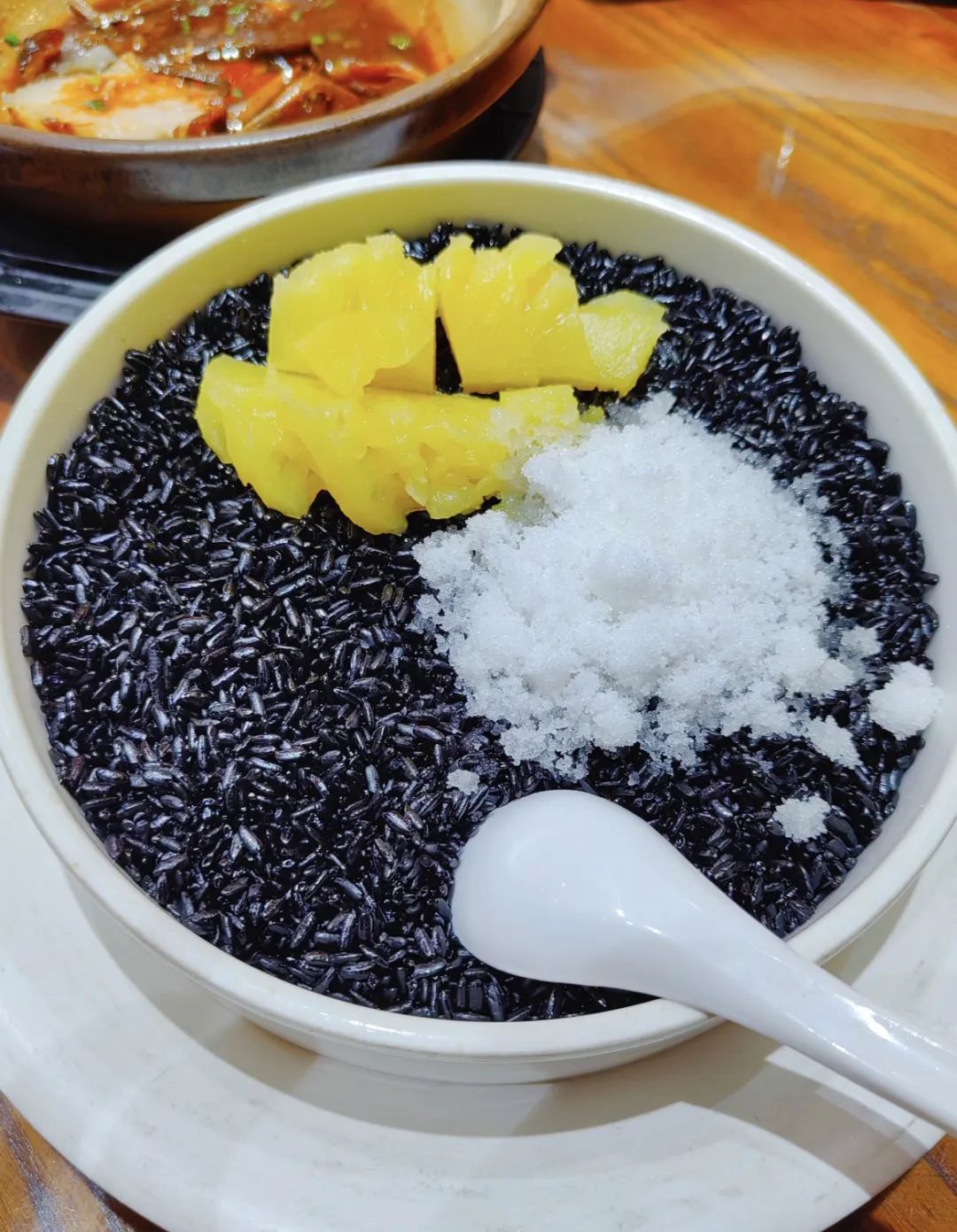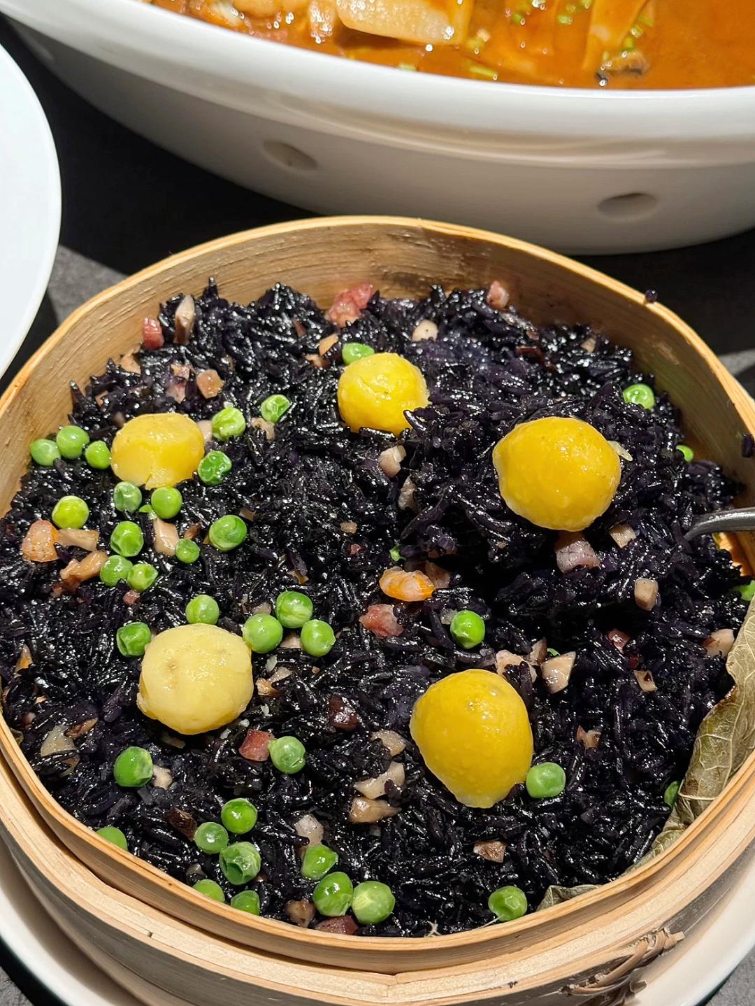 蒸熟的乌米饭色泽黝黑,光泽度也高,口感香糯松软,回味时还有种淡淡的米香和植物清香。