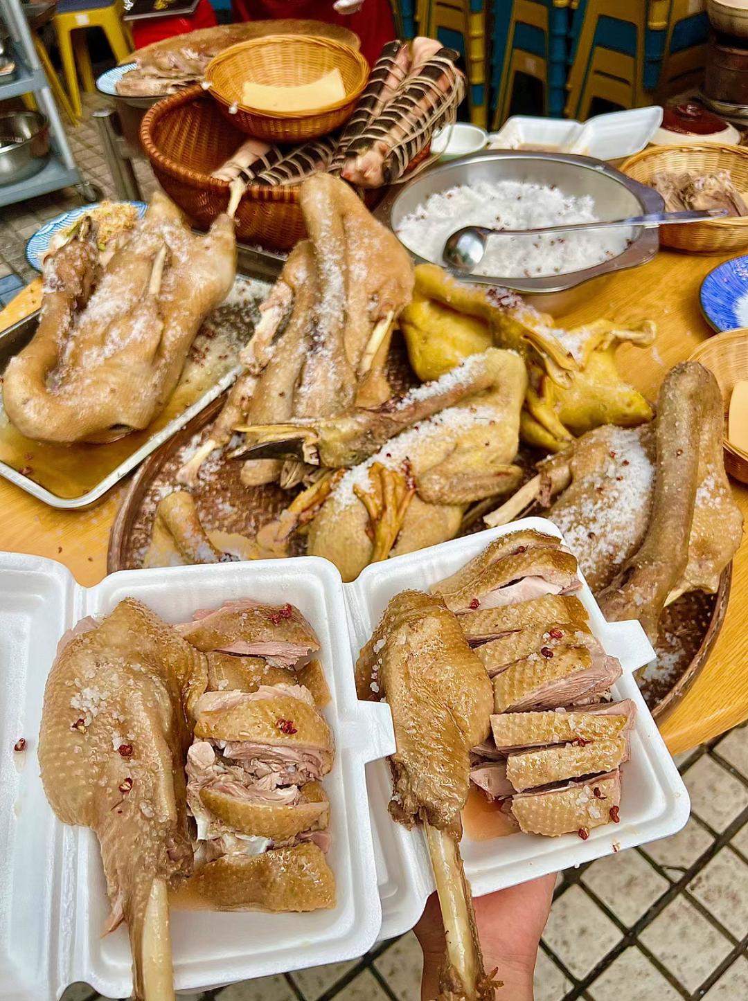 所有腌鹅都是用的天然饲养的草鹅,然后用传统的腌制方法,使香料浸润鹅肉的每一寸肌理中。