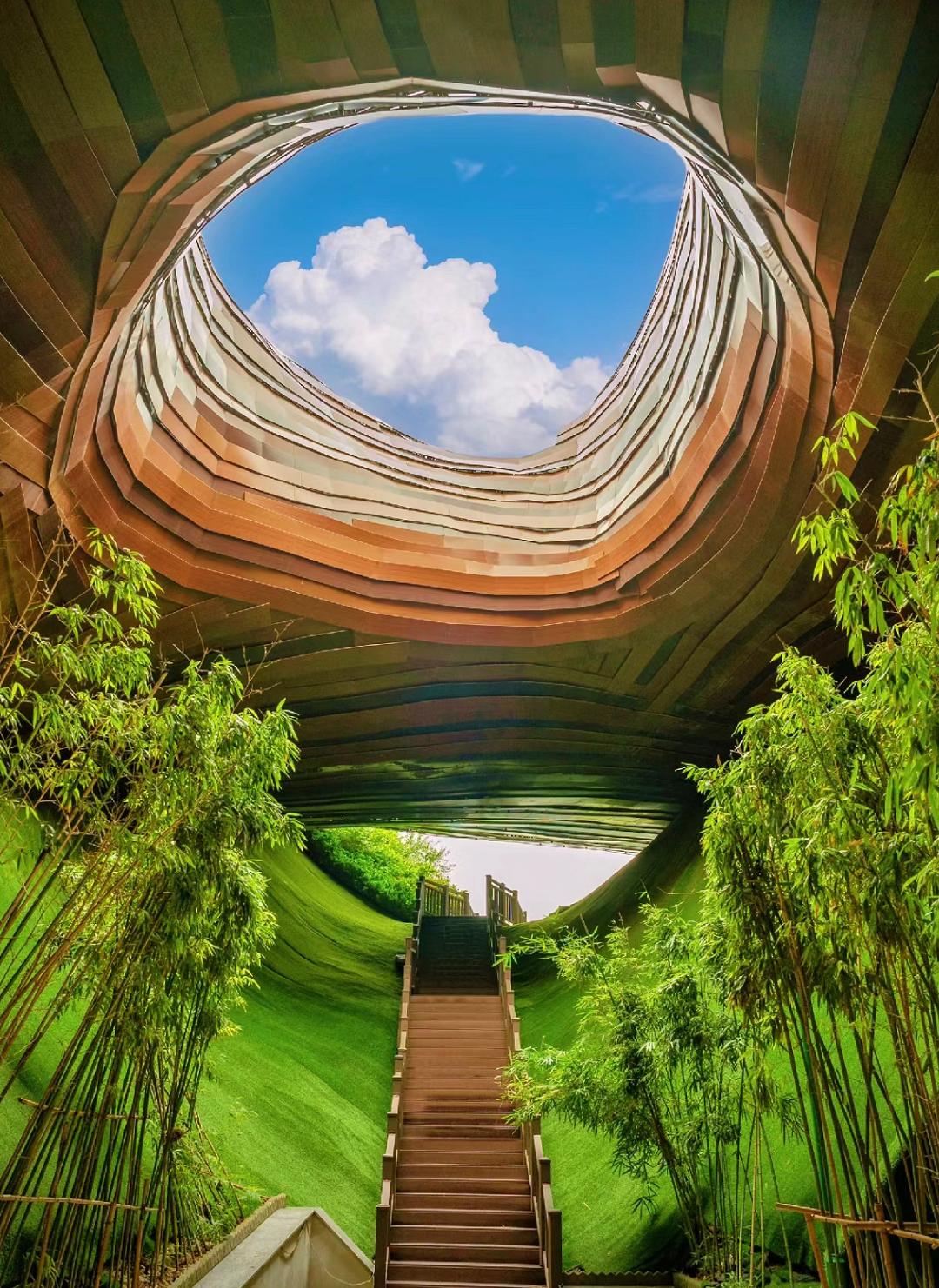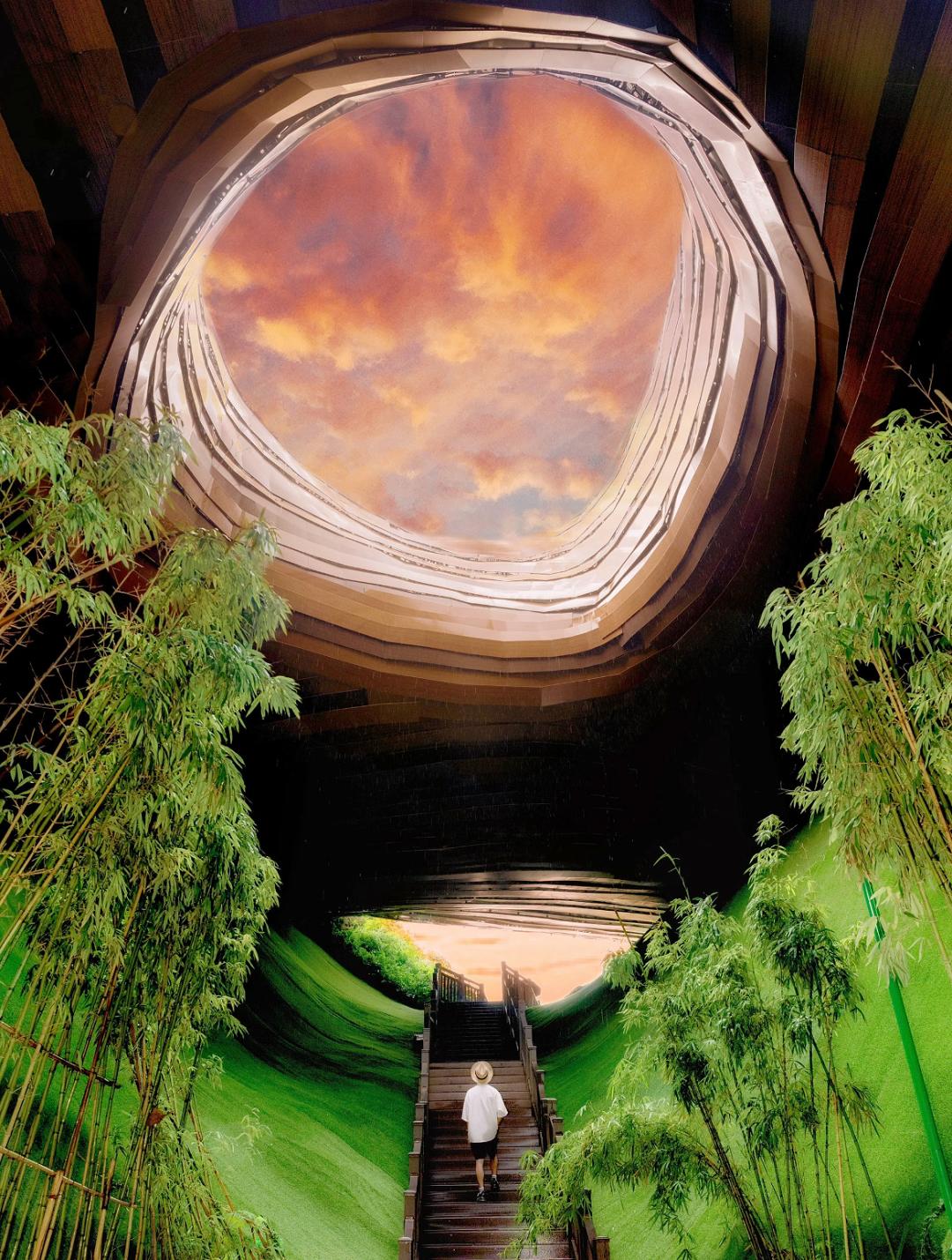 但又因为魔幻的天坑设计,成为了溧阳网红打卡的圣地。走上栈道,就像进入了宫崎骏笔下的漫画世界。