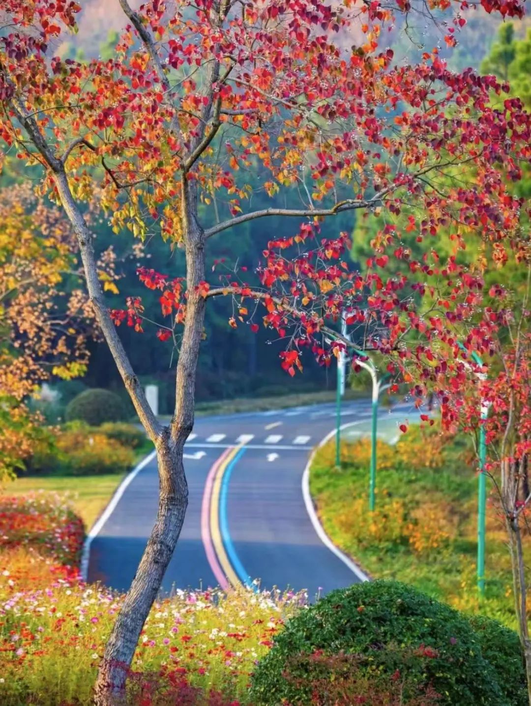 沿着1号公路自驾,治愈感爆棚。初秋时节,路边的栾树也在悄悄变红,层林尽染秋景绝了。