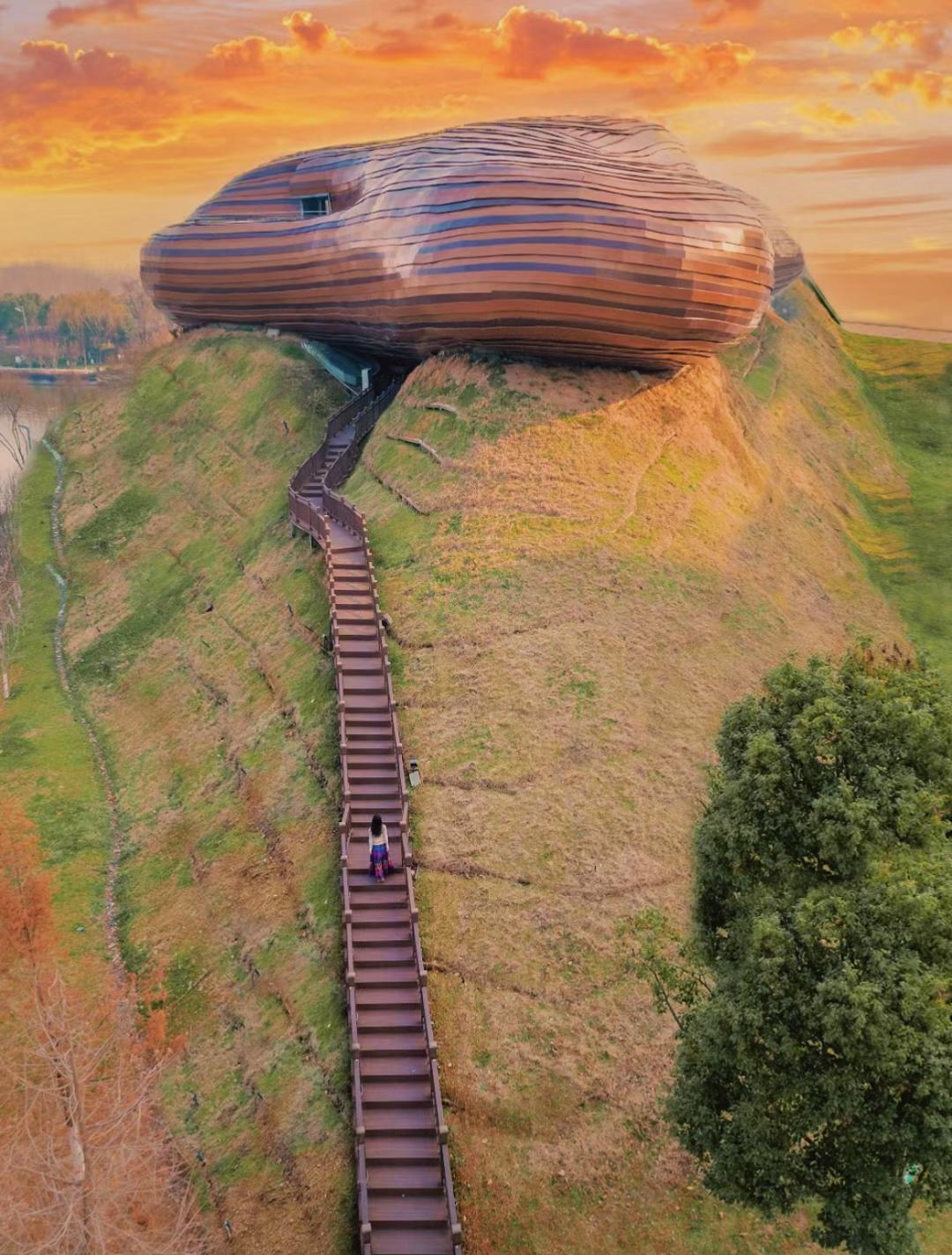 溧阳博物馆说来也很传奇,这座以蔡邕的焦尾琴为原型的建筑,曾被列为“2021年中国十大丑陋建筑”名单中。