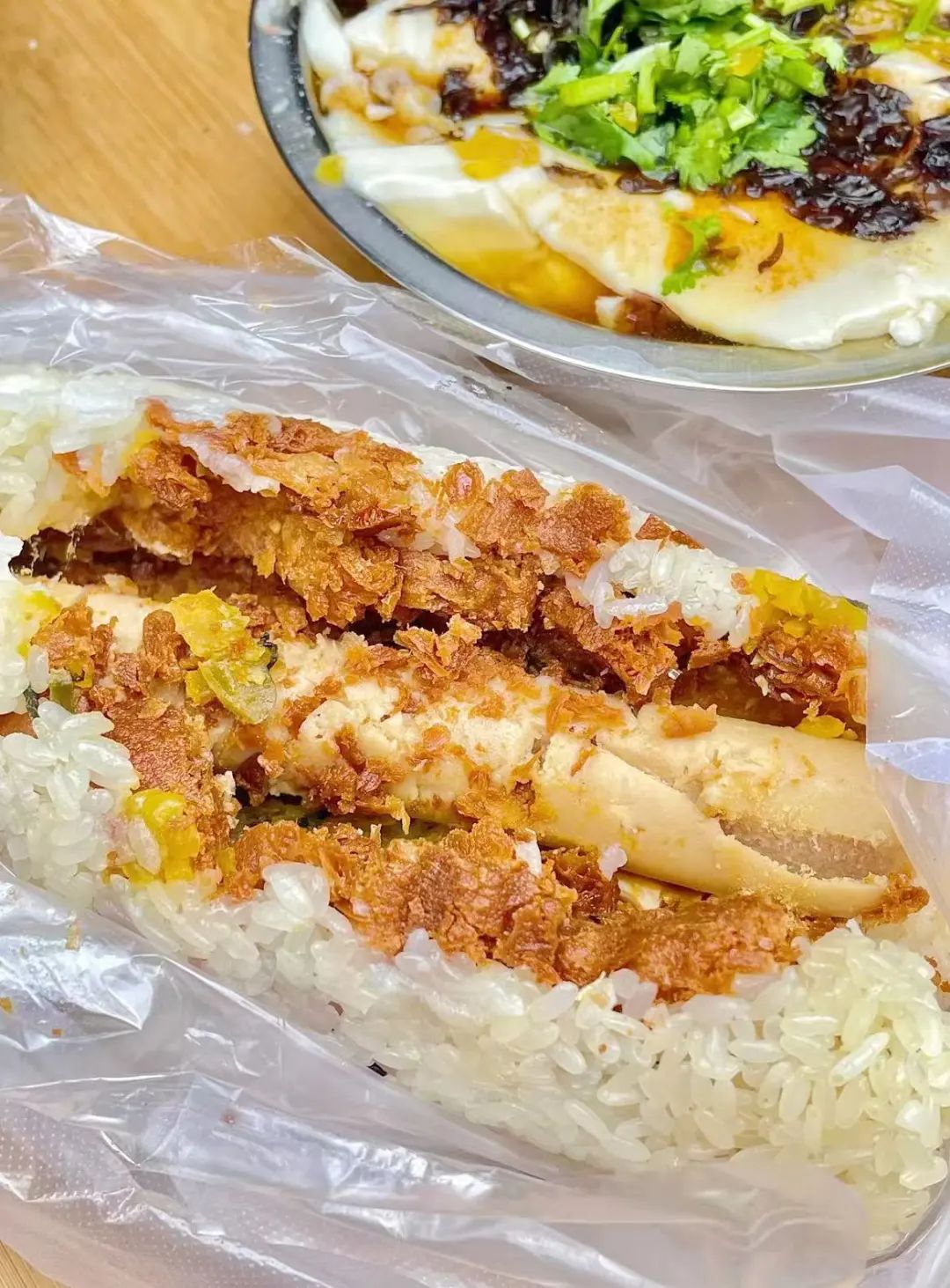 这是溧阳人最常见的早饭之一,糯米和各种食材的搭配,很难让人拒绝。