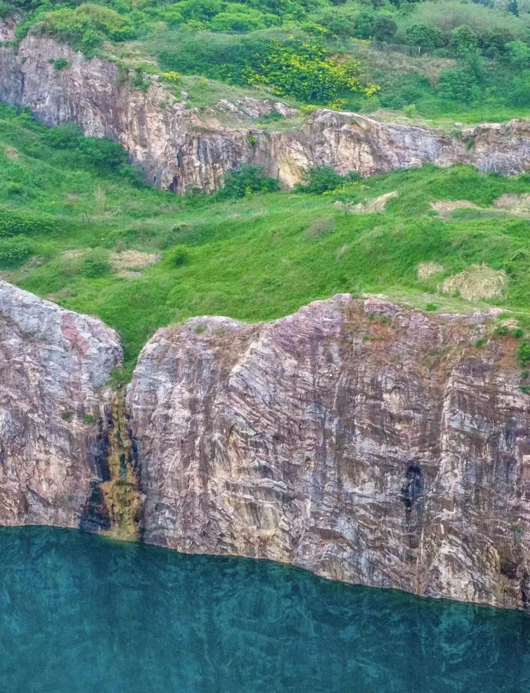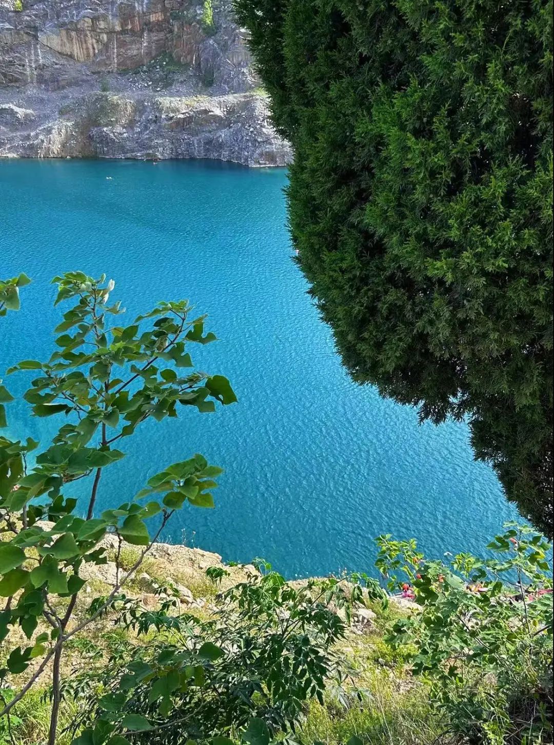 当跨越千年的时光轴轮,看见悬崖边的蓝色矿坑湖时,我们还以为来到了海边。