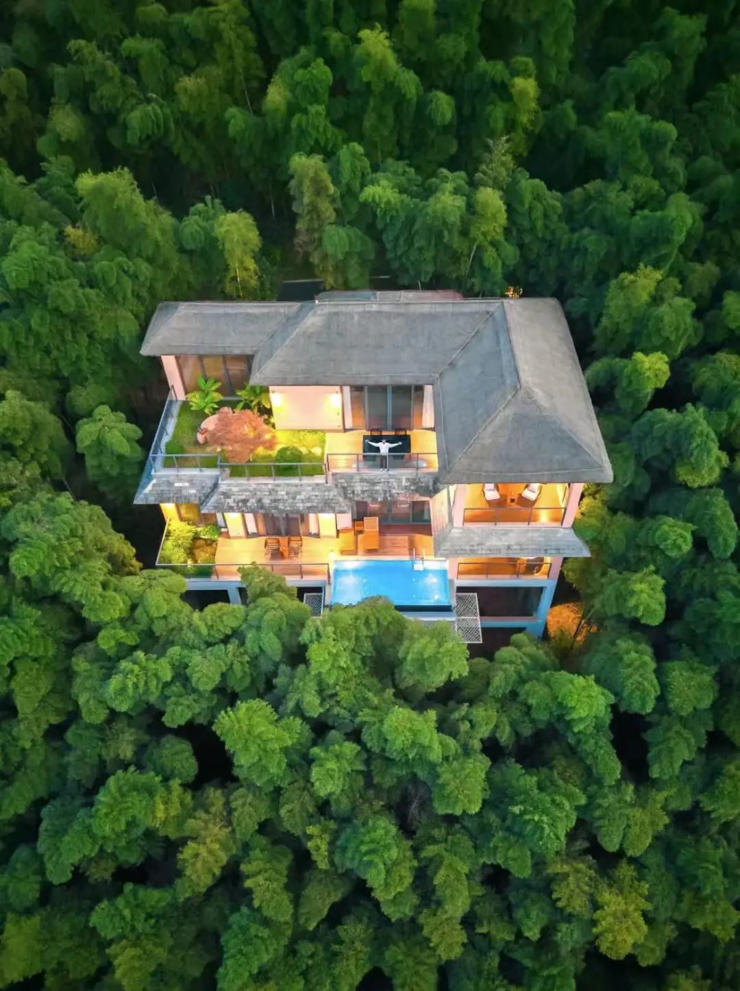温泉旁的酒店、火锅也很多,如果想住一晚的话,可以选择拥有漫山竹景的「御水温泉·竹溪谷」,这里是完全独栋式的酒店,环境清幽。