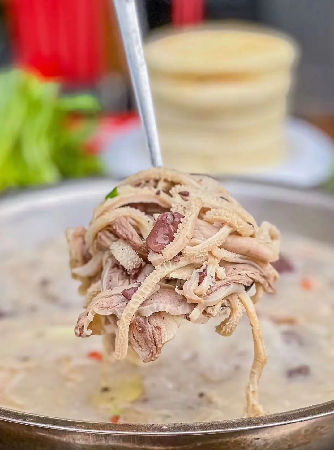 产自周城镇的羊肉,肉质鲜嫩,熬煮后,汤色乳白,清润不腻,喝一口就能暖全身。