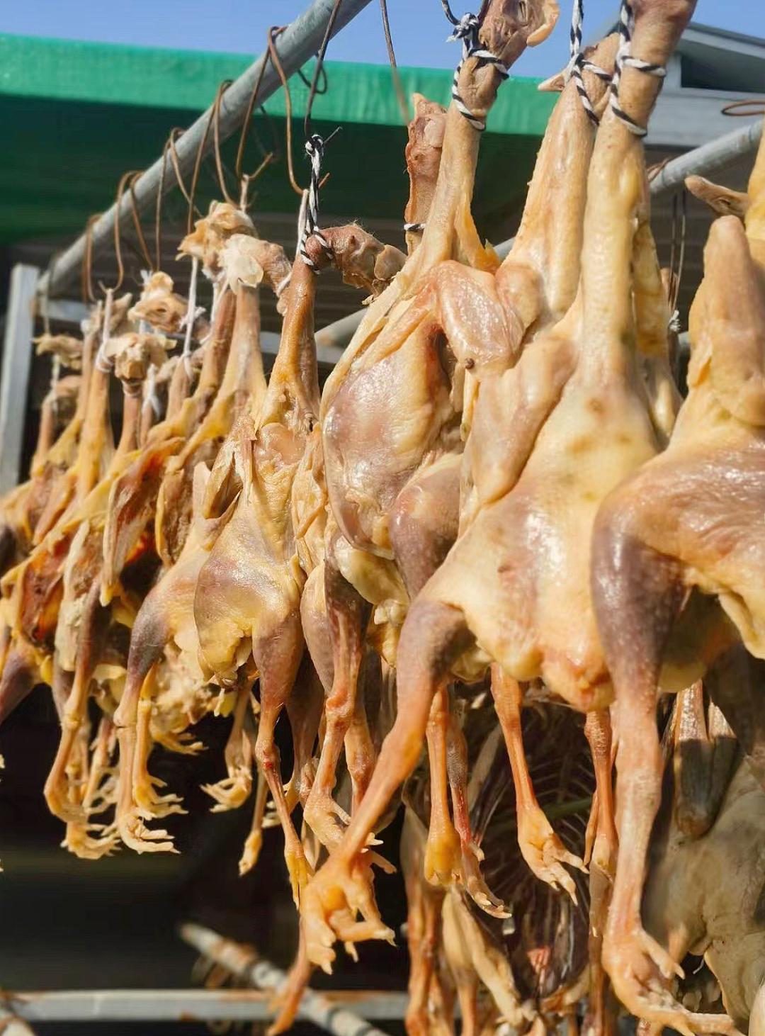 风干后的咸鹅,入口肥而不腻,咸香适口,回味悠长,可以直接吃,可以拿来炖汤或炒菜。