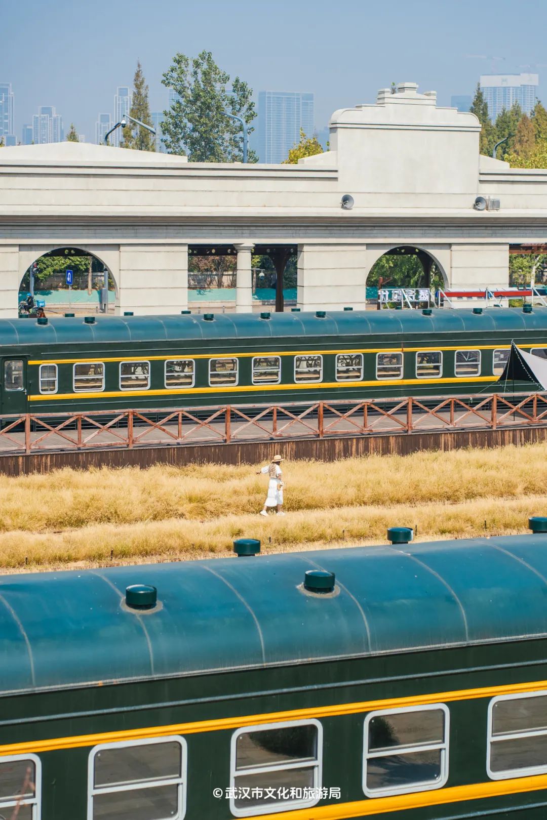 秋风拂面,空气里满是桂花的香气,要去公园里撒欢啊。这里有一个推荐,位于武昌江滩旁的「四美塘文化公园」,漫无边际的草海随风荡漾,一节节绿皮火车错落其间,红砖厂房在秋日的阳光下更显沧桑。
