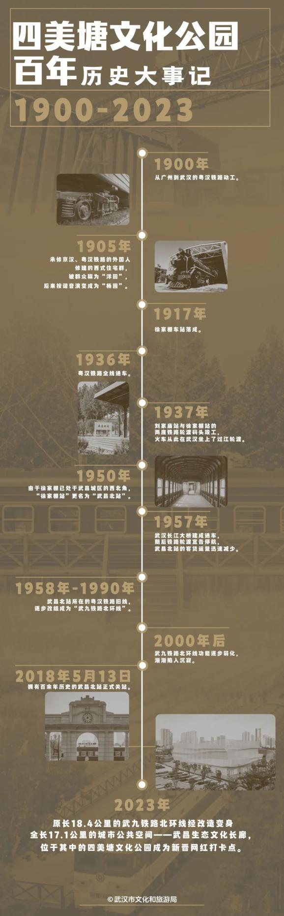 1900年动工的粤汉铁路是京广线的前身之一,当年它的终点站,便是今天四美塘文化公园所在的地方——1917年建成的徐家棚站。