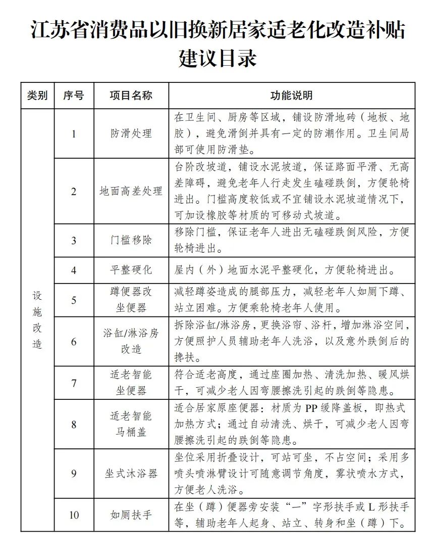 《江苏省消费品以旧换新居家适老化改造补贴建议目录》