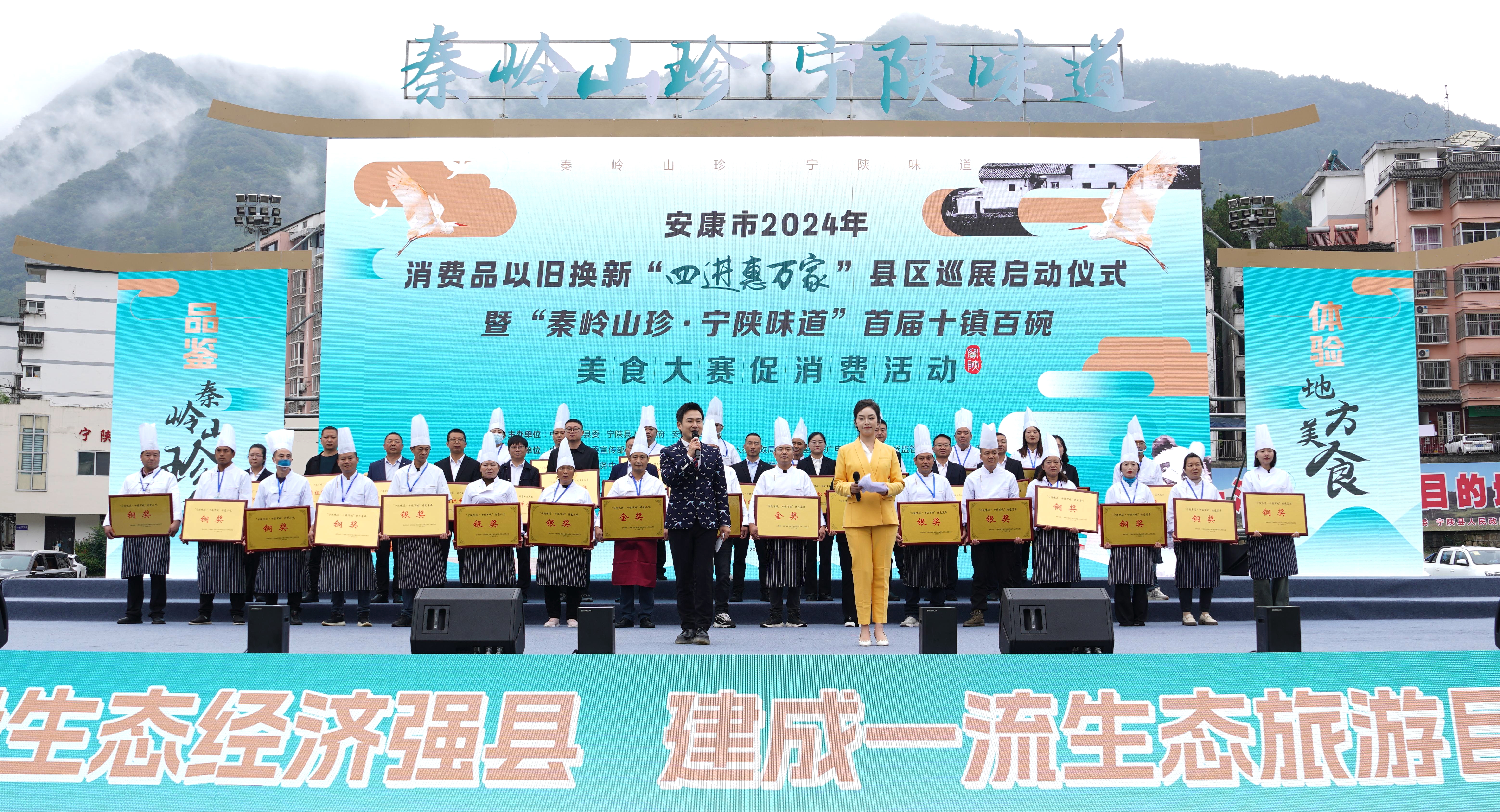 10月12日,安康市2024年消费品以旧换新“四进惠万家”县区巡展启动仪式暨“秦岭山珍·宁陕味道”首届十镇百碗美食大赛促消费活动在宁陕县体育场隆重举行。