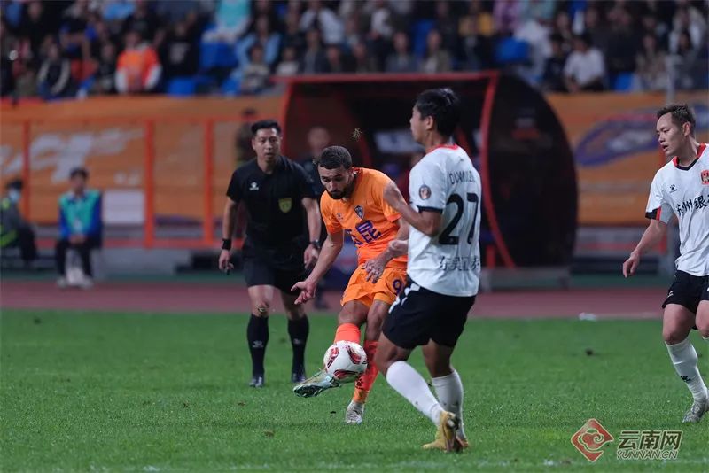 比赛现场。记者 张成 摄本赛季云南玉昆表现强势,作为升班马在首个中甲赛季便完成了两连跳,一路从中乙完成了冲甲和冲超的目标。本赛季中甲前27场战罢,云南玉昆取得了19胜6平2负的战绩,积63分排名榜首,并且主场保持不败。