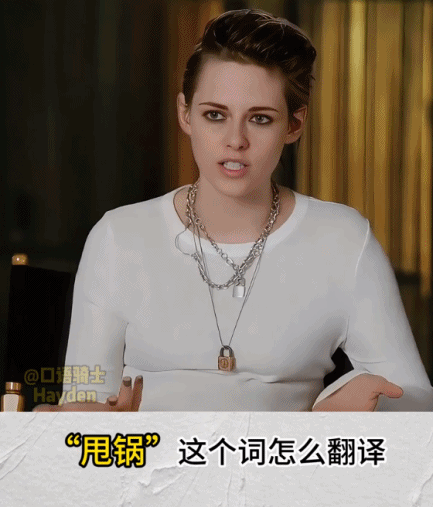 还有用 Kristen Stewart ( 暮光之城女主 )教大家学英语。一点开视频,这位美貌如花的外国明星就用中文亲切的问候你: “ 甩锅这个词怎么翻译?别再翻译成 throw the pot ,这是中式英语 ” 。
