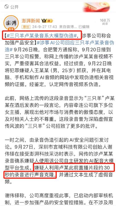 然而,警方调查后,发现这段引发轩然大波的音频是假的,仅仅由一段 30 秒左右的录音进行声音 “ 孵化 ” 而成。