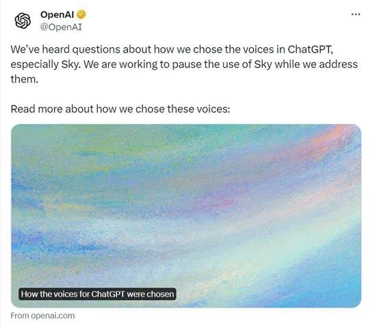 在长文中, “ 寡姐 ” 透露 openAI 曾经邀请她为公司新的聊天机器人 ChatGPT-4 配音,在她拒绝后, OpenAI 发布了一个声音与她声音极为相似的声音,以至于她的 “ 最亲密的朋友和媒体都无法分辨出区别 ” 。