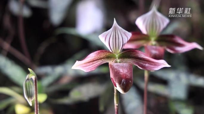 近日,广东紫金白溪省级自然保护区内的千株紫纹兜兰迎来盛花期。紫纹兜兰为国家一级保护野生植物,主要分布在海南、云南等地。详情(来源:新华社)