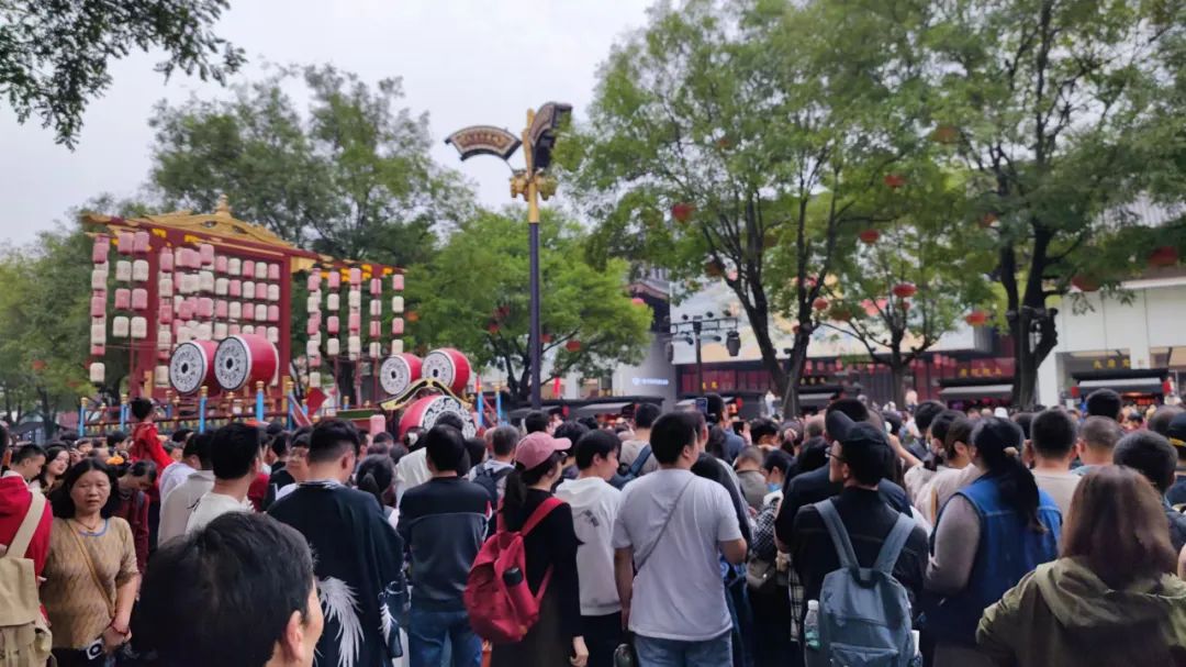 10月6日,城叔“错峰”在下午三点左右来到大唐不夜城,大雁塔外的红墙下、玄奘法师的雕像前聚满打卡的游客,步行街中间盛唐密盒等演出还没开始,但是台下已经被观众围得水泄不通。即便已经临近假期尾声,但这里的热度却没有消减。