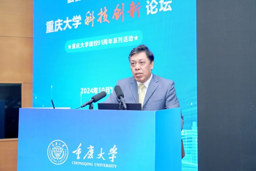 王树新代表学校致欢迎辞,对与会嘉宾、校友表示热烈欢迎,向社会各界长期以来对重庆大学各项事业发展的指导、支持和帮助表示衷心感谢。他简要介绍了重庆大学95年办学的历史和“双一流”建设尤其是科技创新的最新进展情况。他强调,当前新一轮科技革命和产业革新加速演进,科研创新及其范式正在发生着深刻变革,希望以本次论坛为契机,凝聚更多更大更强力量,共同打造良好科技创新生态,为高质量建设“百年新重大”注入强大动力。他表示,重庆大学将深入学习贯彻党的二十届三中全会和全国科技大会、全国教育大会精神,统筹推进教育科技人才体制机制一体改革,着力提升培育和发展新质生产力的综合能力,为加快实现高水平科技自立自强提供有力支撑、作出更大贡献。