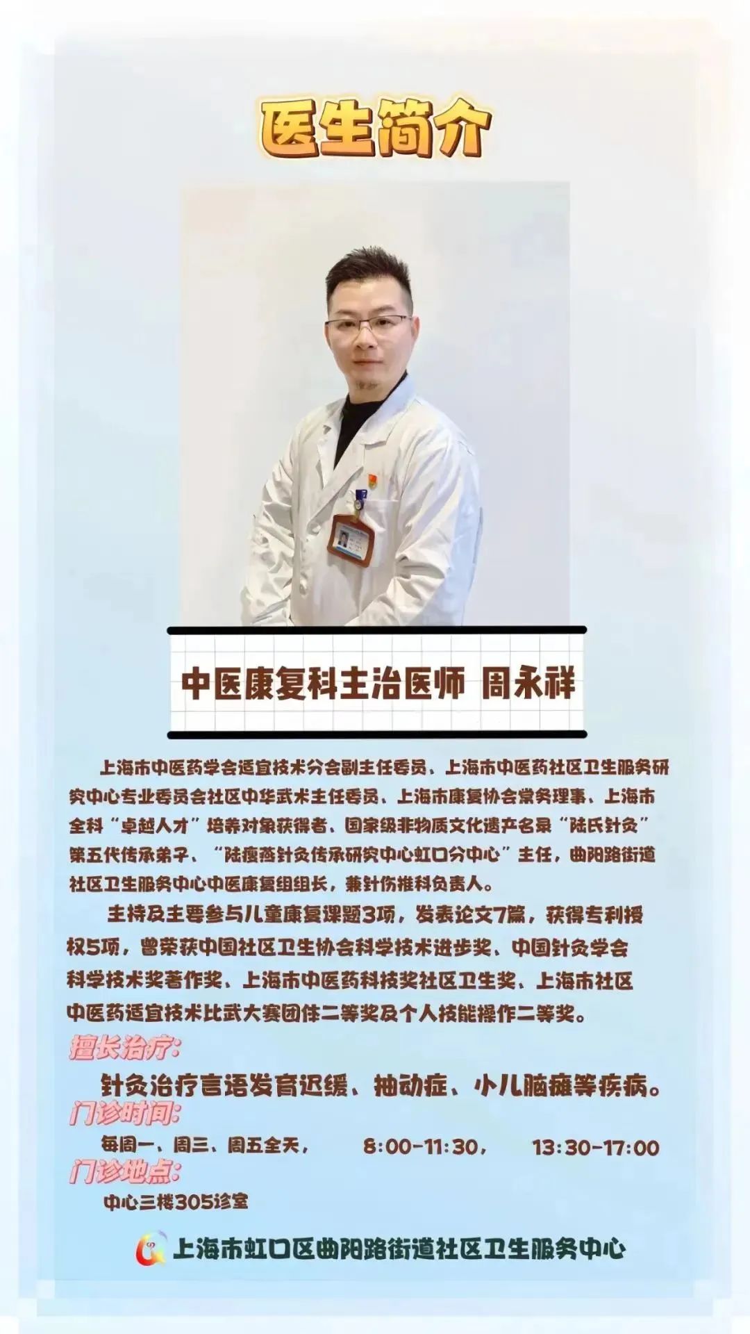 这是曲阳路街道社区卫生服务中心和家庭的双向奔赴,是医师们无悔地付出,换来了家长们坚定的信赖和选择。今年是曲阳儿童康复基地成立16周年,在周永祥组长的带领下积极开展医教结合工作,持续关注特殊儿童群体的快乐成长,人才队伍也在不断壮大。不久前,儿童康复科技师张换心的《家庭指导促进语言发育迟缓儿童语言发展的研究》成功立项2024年虹口区青年课题,希望通过更加科学、系统、完善的专业知识体系,助力儿童康复事业的发展。