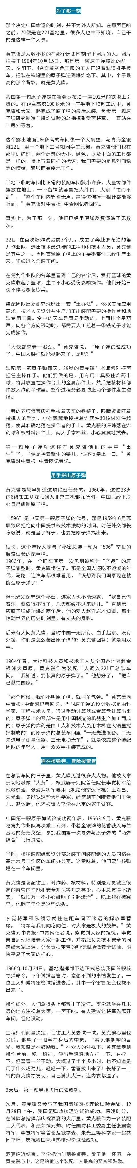 ┃来源:整理自冰点周刊(作者|胡春艳 张国)《参与组装中国第一颗原子弹的人——记“两弹”装配和试验亲历者黄克骥》、青蜂侠视频、聂荣臻元帅陈列馆、我们的太空、央视新闻等。┃责编:宋莉